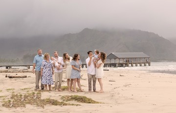 because one of my clients arrived on the island two days ago and went to check out Hanalei Bay, where our photo session’s been planned. She was disappointed that there were more people on the beach than she'd imagined, more than she’d seen in photos on line. I can understand that. The world is swiftly getting crowded. Here’s the thing about the iconic Hanalei Bay. There probabaly isn’t a more majestically dynamic location anywhere on the island. There’s the mountains, Hihimanu, Namolokama, and Mamalahoa lying in soft mist, profusions of jungly rain forest, the lazy Hanalei River, and let’s not forget the stately pier with tons of great angles for a photographer like me. So what about the crowds? For me, not a problem. First I always elimate from my compositions most of the beach goers and swimmers, and if I cannot frame them all out like in wider shots, I remove them in the post producing stage unless they add to the dynamics of the overall photo ambience. The photographs on this web page are from a shoot at Hanalei pier, a few days ago, Nov 2nd 2021. The beach was as crowded, perhaps more so than I’d ever seen in early November. Did it matter? Once we started shooting, none of us even noticed.